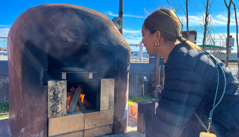 交流(20分):ピザ窯で軽食、個別質問タイム
